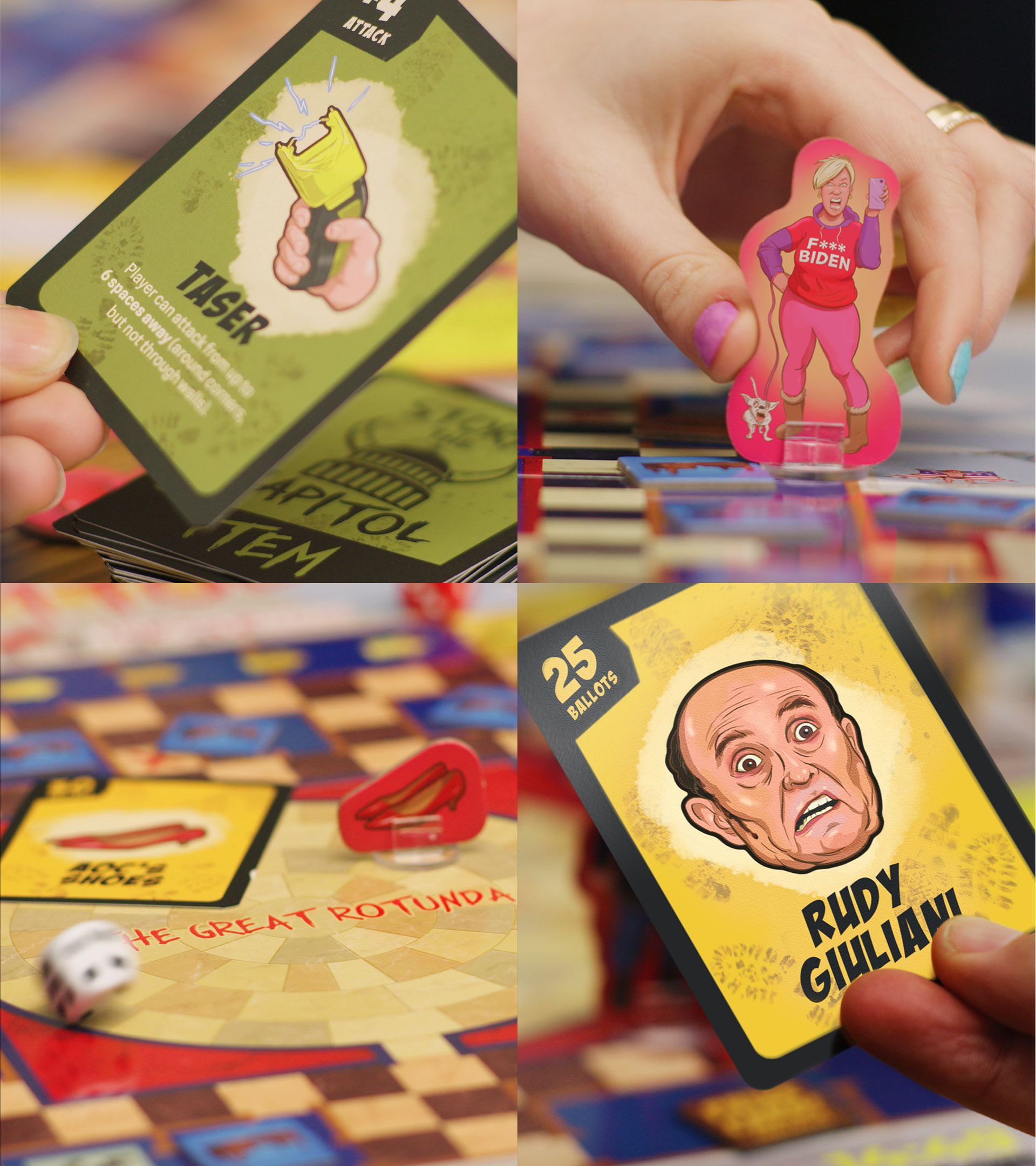 It’s time to relive January 6, 2021. Play as either a red-blooded American Patriot or the Capitol Police as battle rages through the United States Capitol following a tumultuous rally by an embattled President Trump. Flip over desks, fight each other and the police, and steal artifacts as you attempt to collect enough votes to overturn the results of the election. But watch out! The Capitol Police will do anything (well, most things) to prevent you from reaching Trump’s helicopter — and the National Guard are on their way.